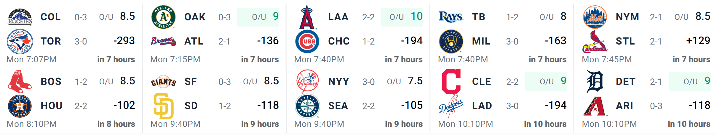 The first Monday slate of the season is here, and it’s a big one. All 30 teams will be in action at some point today, with 20 of them landing on this evening’s 10-game main slate. Every team now has a few games under its belt, and while the sample sizes are still small in the context of a 162-game season, we’re starting to gather some early data points that can help shape our DFS approach.