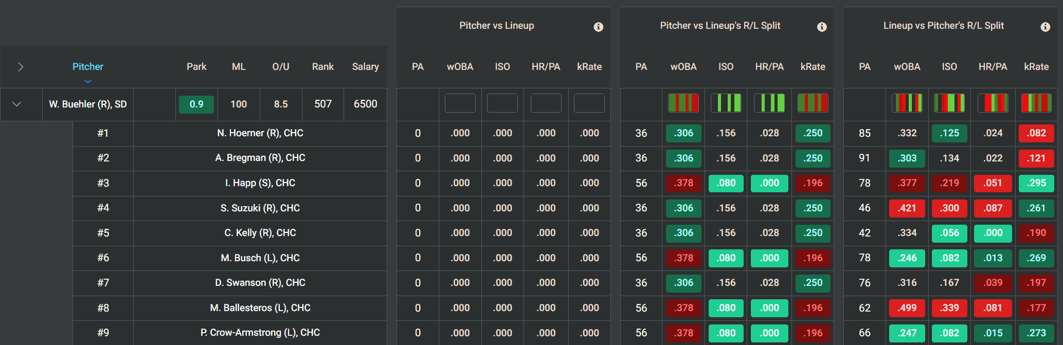 Chicago Cubs vs. Walker Buehler (RHP), SD