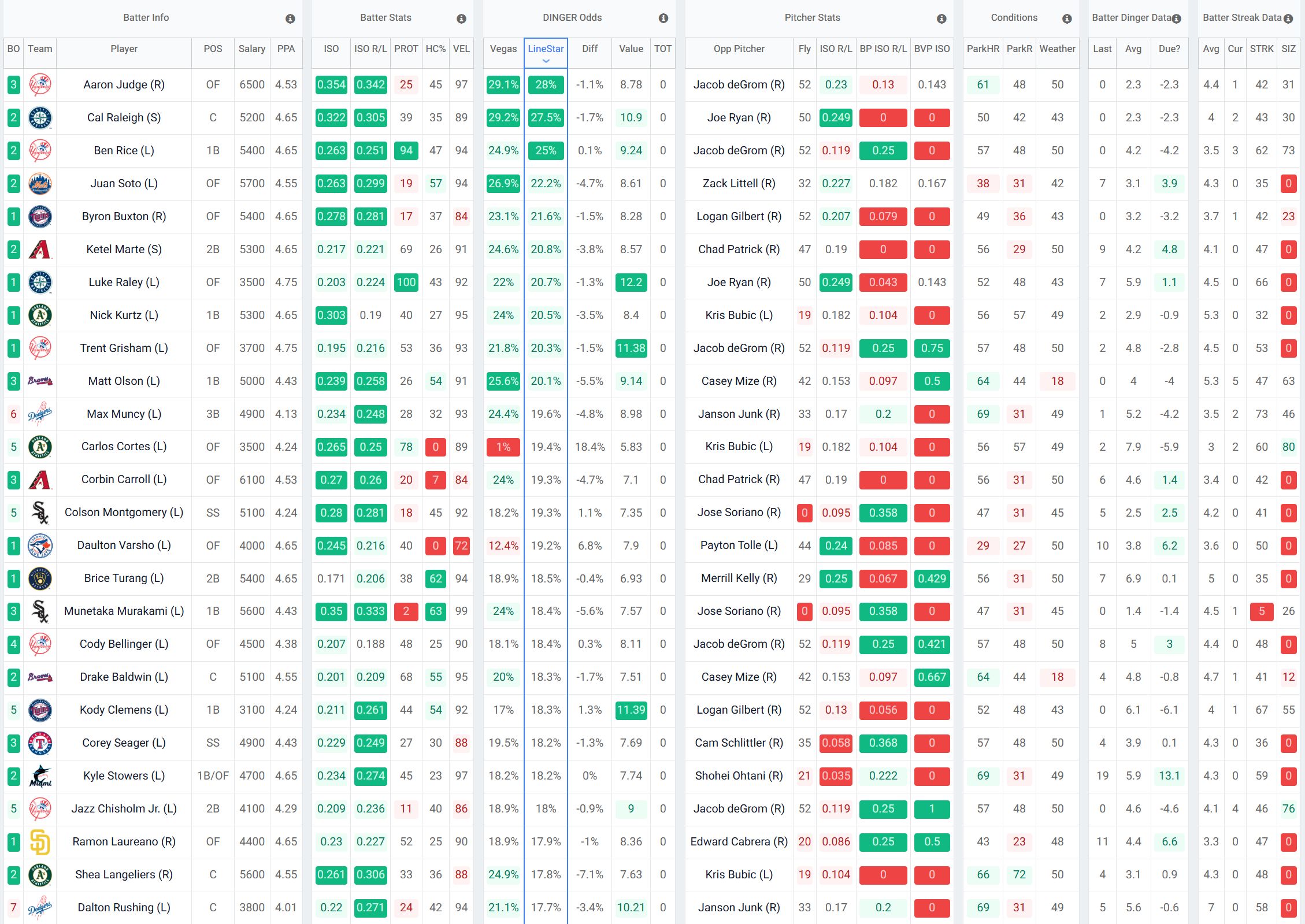Disclaimer: Stacking in MLB DFS is not a requirement but it is a very common strategy used to take down GPPs. This strategy is covered in more detail in the MLB DFS strategy guide linked in the header at the top of this newsletter. Check out the MLB StackFinder on LineStar.